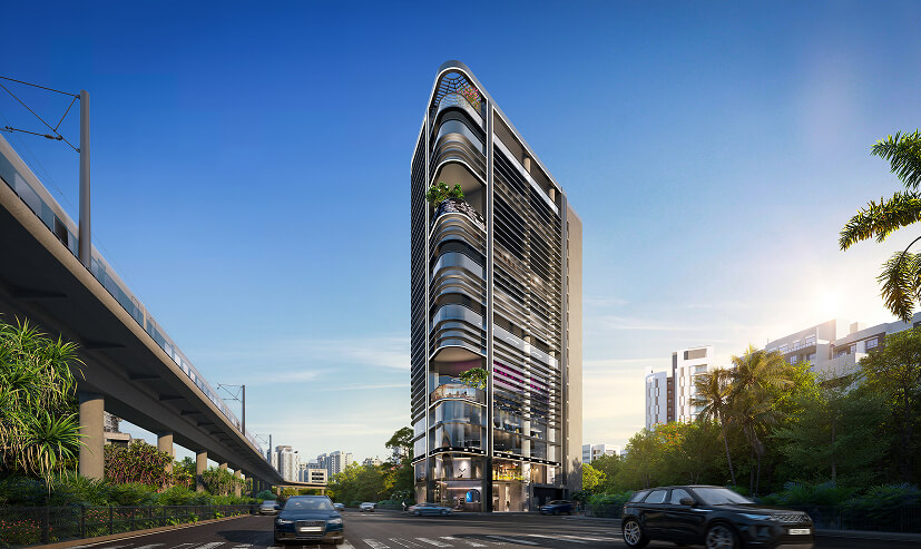 The gleaming glass façade and sculptural form of Notan Edge command attention—not through excess, but through precision. This is architecture as a statement of progress: where contemporary minimalism meets timeless commercial grandeur, creating a workspace that inspires as much as it impresses.